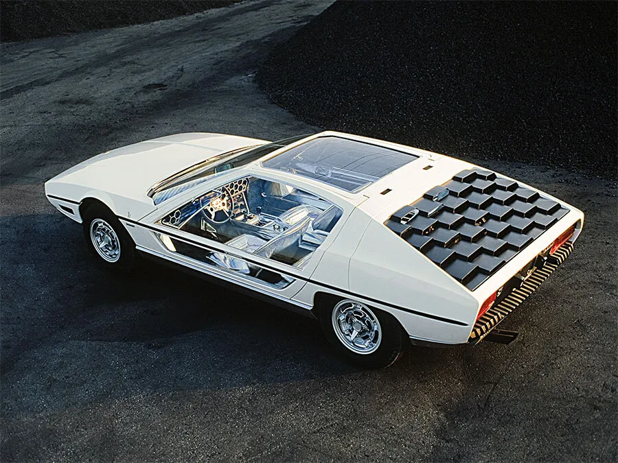 Lorsque Ferruccio Lamborghini et Nuccio Bertone émettent l’idée de redéfinir le concept de Grand Touring, Marcello Gandini ne se fait pas prier. En se basant sur le châssis de la Miura, rallongé de 120mm, il donne vie à un vaisseau futuriste, immédiatement reconnaissable à sa forme anguleuse, son étonnante surface vitrée, ses portes Gullwing et ses quatre places ! L’engin est doté du demi V12 de la Miura, soit un 6 en ligne de 175 chevaux. La Marzal restera au stade d’un unique concept, mais inspirera fortement l’Espada quelques années plus tard !
