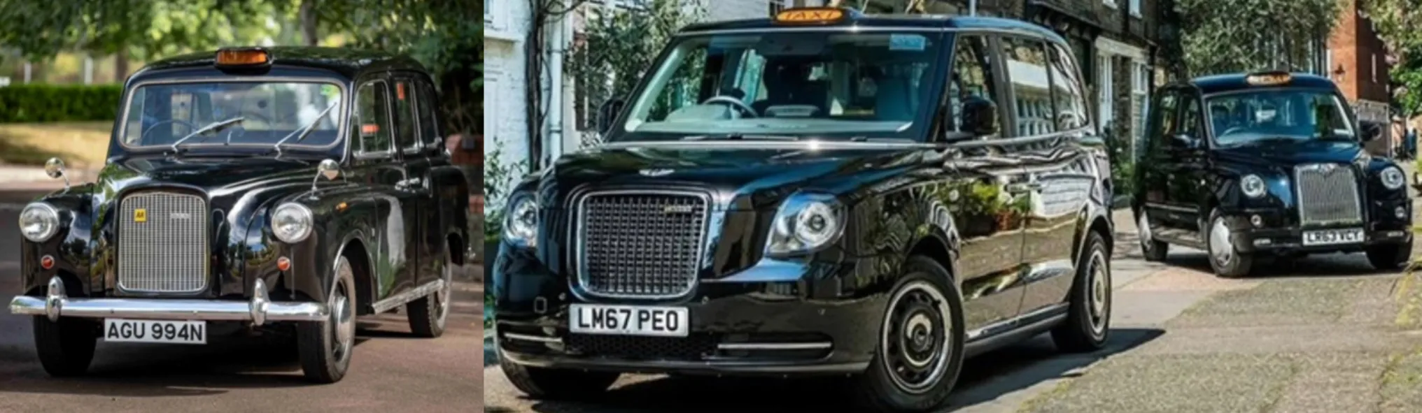 Imaginez-vous la France sans ses terrasses de cafés ? Non. Les londoniens ne conçoivent pas plus Londres sans ses typiques black cabs ! Il est vrai que le même modèle a officié pendant un demi-siècle ! Le taxi Austin FX4 a été produit de 1958 à 1997 par différents constructeurs. La série des TX qui lui a succédé puis le LEVC électrique en 2019 reprennent le même design. Non par nostalgie mais afin d’être identifiés par les clients dans la circulation, le constat ayant été fait que les taxis basés sur des voitures ordinaires sont ignorés !