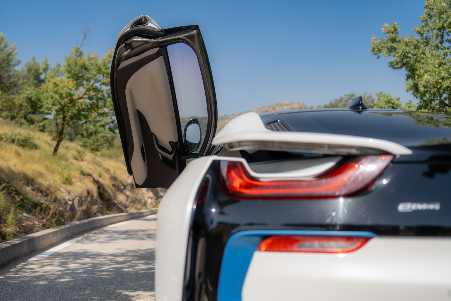 Built with a carbon fiber-reinforced plastic passenger cell and aluminum chassis, the i8 was powered by a 1.5-liter turbocharged three-cylinder engine paired with an electric motor for a combined output of 374 horsepower. This hybrid powerhouse allowed the i8 to accelerate from 0-62 mph in just 4.4 seconds, making it a serious contender against other high-performance sports cars, yet with a focus on sustainability that its peers at the time lacked.