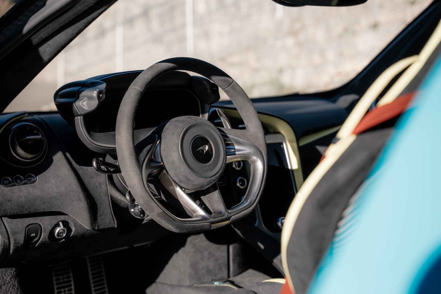 The interview will start soon, with a first revision scheduled at McLaren Monaco. The consumables are new, consistent with a vehicle displaying only 1,300 km. Regarding external elements, the car has integral PPF protection.