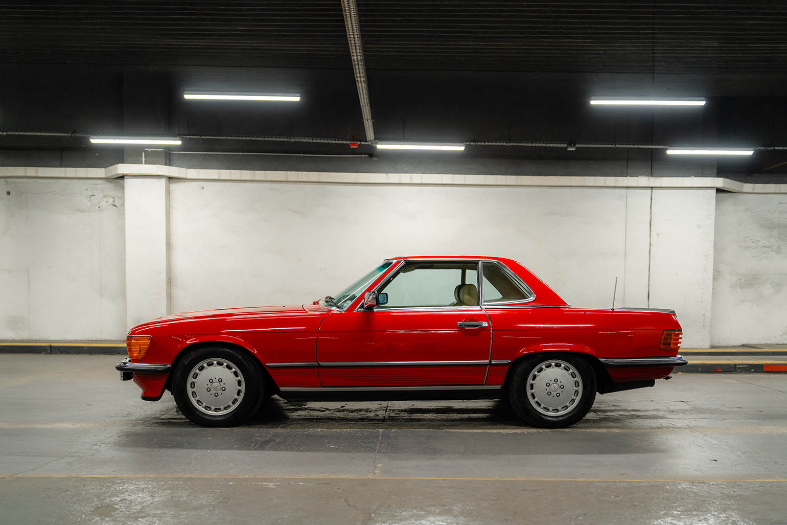 On screen, R107 SLs became cultural shorthand for success—ubiquitous in 1980s TV from Dallas to Hart to Hart. While many of those were 450/380s, the 500 SL shares the same unmistakable silhouette: long bonnet, compact cabin, and that detachable hardtop that turned it into a miniature coupe for winter. The model’s celebrity draw extended off‑camera too; the R107 was a Beverly Hills driveway fixture throughout the decade.