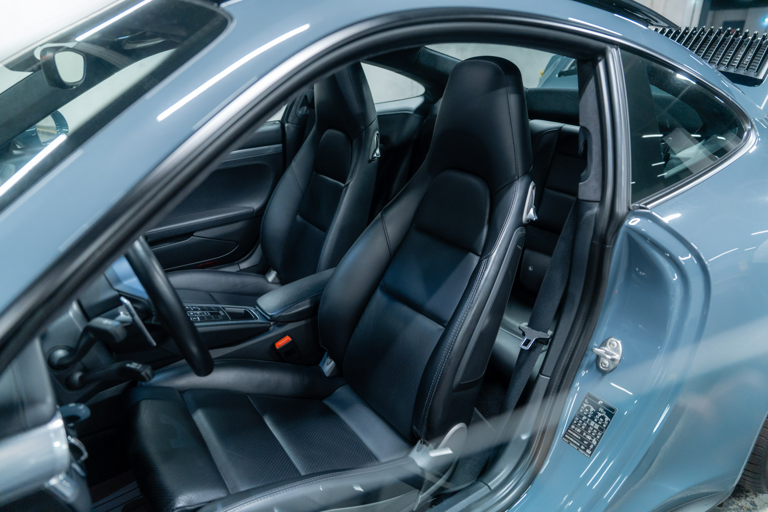 This example comes in Graphite Blue Metallic combined with a black leather interior. The body is in excellent condition and benefits from a protective film (PPF) on the rear fender flanks and the panoramic roof, complemented by a ceramic treatment. The cabin is in new condition, with no notable faults, and all the instrumentation works perfectly.