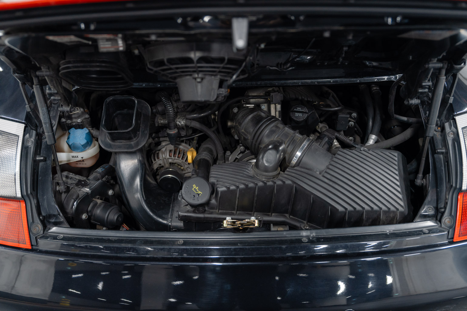 This example is presented in an elegant Black Metallic finish (LC92), paired with a full black leather interior (AH). The bodywork is in condition consistent with its mileage, with light stone chipping on the front bumper, which will be refinished for the sale. The cabin is in good overall condition, and all onboard instrumentation functions perfectly.