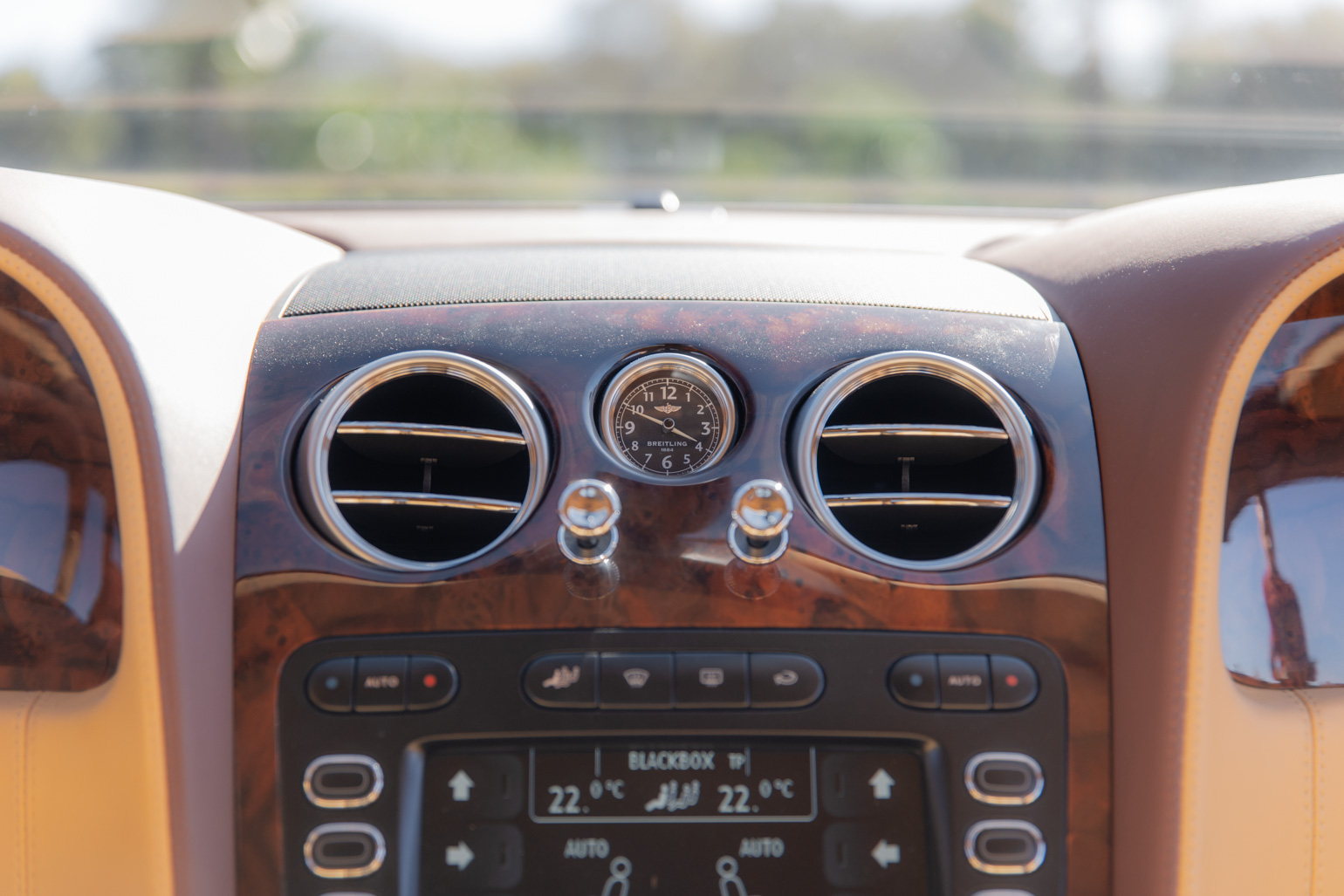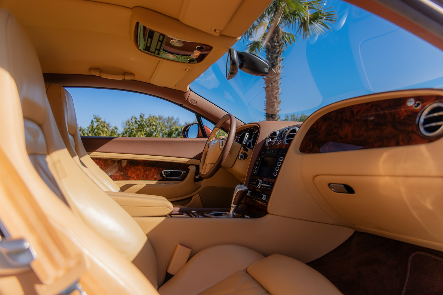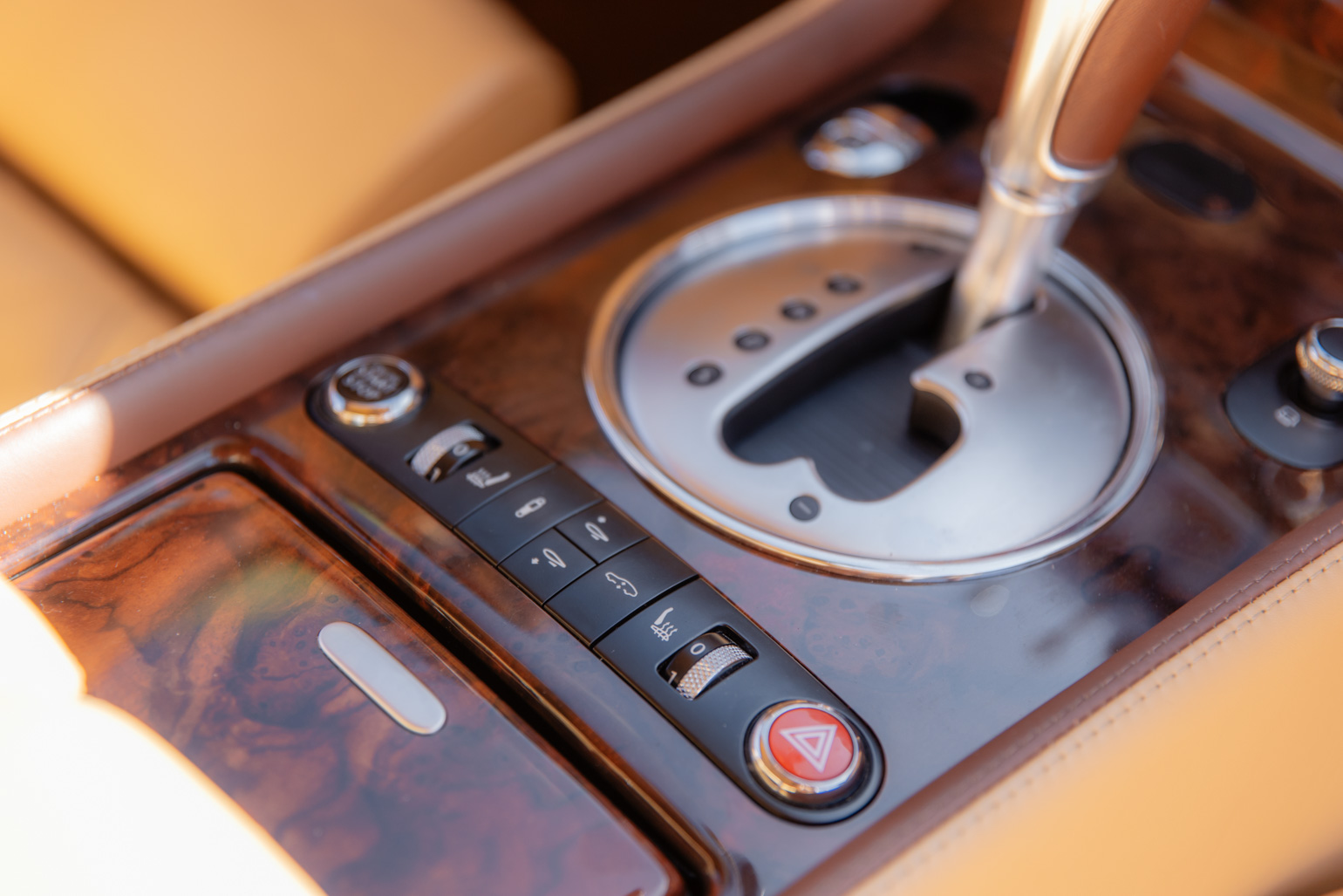 Cet exemplaire se présente dans une élégante teinte extérieure Chestnut, associée à un intérieur en cuir bi-ton Saffron et Cognac signé du programme Mulliner. La carrosserie est en excellent état général, seules quelques traces de gravillonnage sont visibles sur la face avant. Les quatre jantes ont été entièrement refaites. L’intérieur, sans défaut, se distingue par la qualité exceptionnelle de ses cuirs et de ses finitions ; le ciel de toit a été refait à neuf en mars 2025. Toute l’instrumentation de bord est pleinement fonctionnelle.
