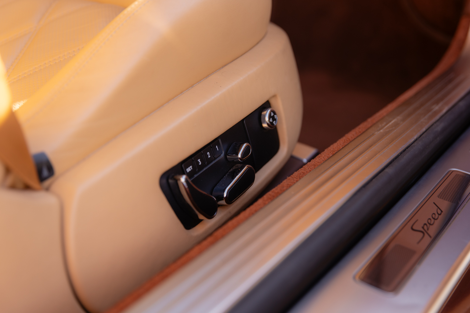 Sous le capot, le W12 biturbo de 6,0 litres voit sa puissance portée à 610 chevaux, avec un couple de 750 Nm transmis aux quatre roues par la boîte automatique ZF à six rapports. Cette configuration permet à la GT Speed d’atteindre 326 km/h, faisant d’elle la Bentley de série la plus rapide de son époque.