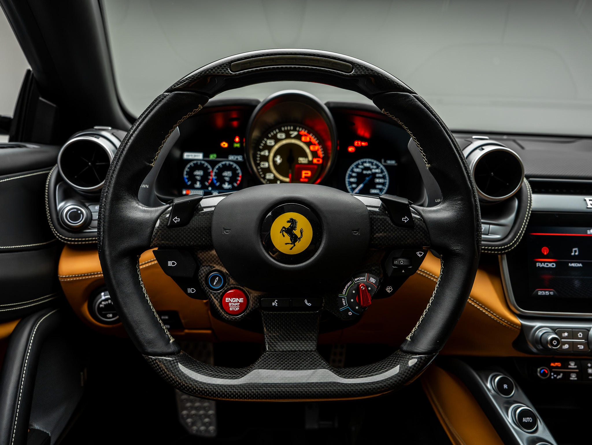 LaFerrariGTC4Lusso T est la première Ferrari quatre places équipée d’un moteur V8 turbo, moteur qui assure une agilité et une réactivité extrêmes couplé à la traction arrière et aux quatre roues directrices. Le système Dual Cockpit, grâce auquel le passager peut interagir avec le système embarqué de la voiture, devenant ainsi un véritable copilote, continue lui aussi d’évoluer.