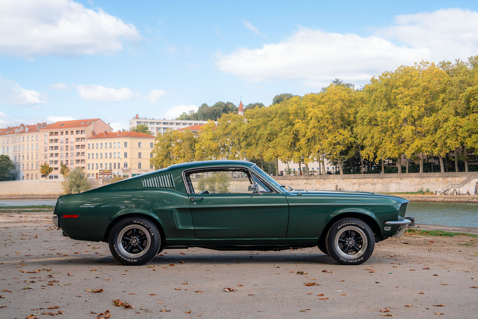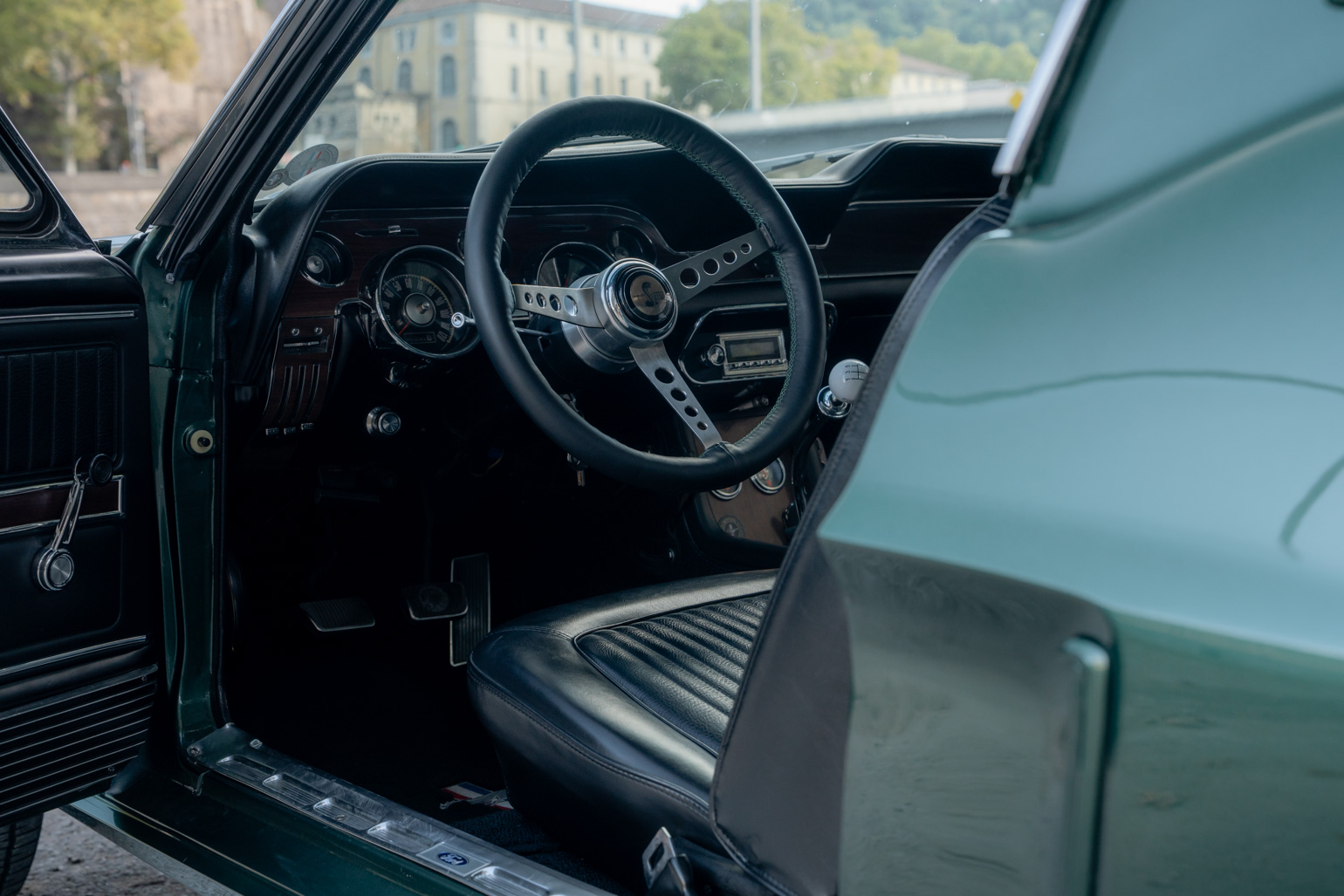 Notre Ford Mustang Fastback Bullitt, mise en circulation le 2 janvier 1968, totalise aujourd’hui 26 000 miles (non garantis). Importée des États-Unis, elle est actuellement immatriculée en France depuis son changement de propriétaire en juillet 2022.