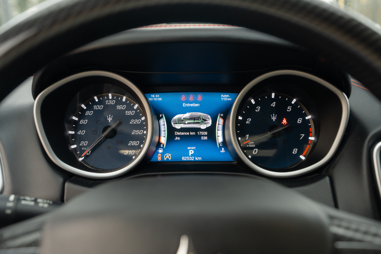 Notre Maserati Ghibli S Modena, mise en circulation le 17 décembre 2018, totalise aujourd’hui 65 000 km. D’origine allemande, elle est actuellement immatriculée en France. Le propriétaire actuel en a fait l’acquisition en septembre 2025.