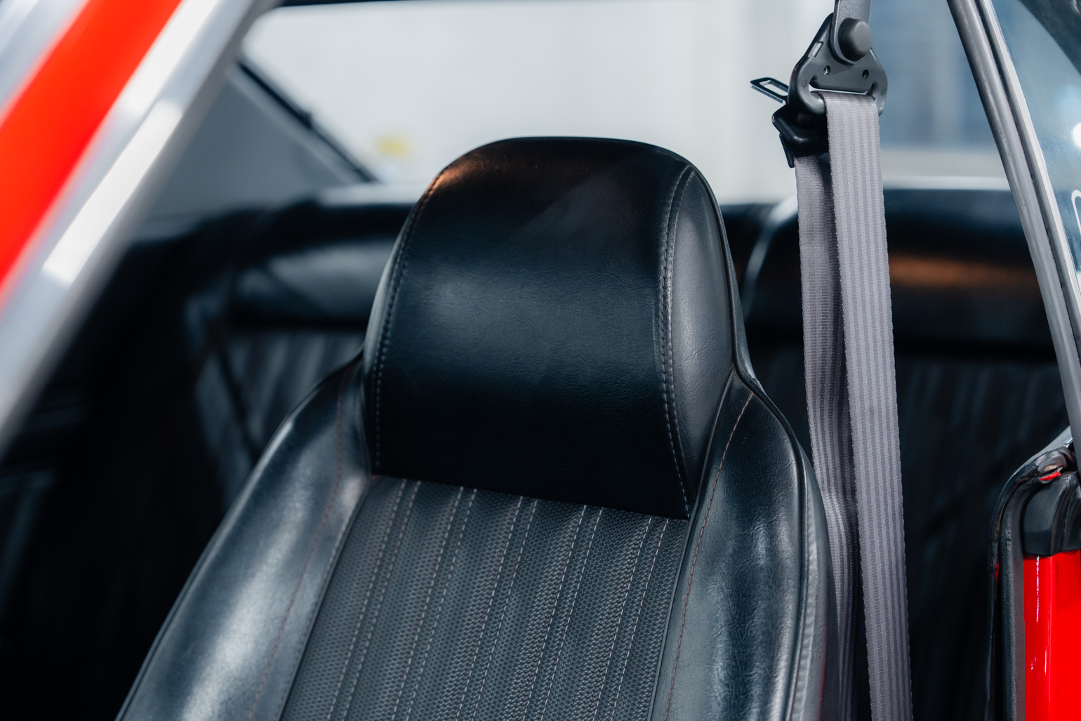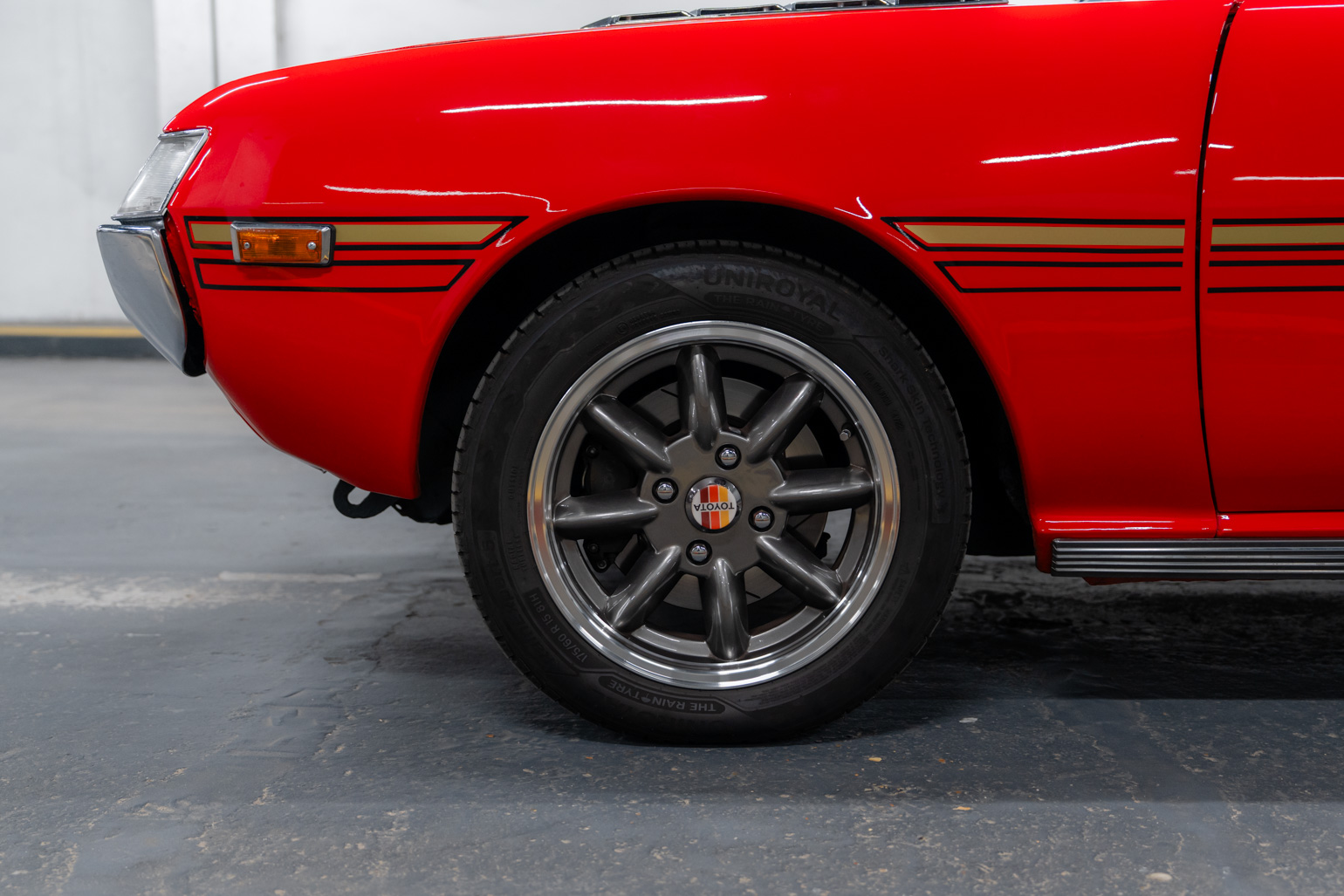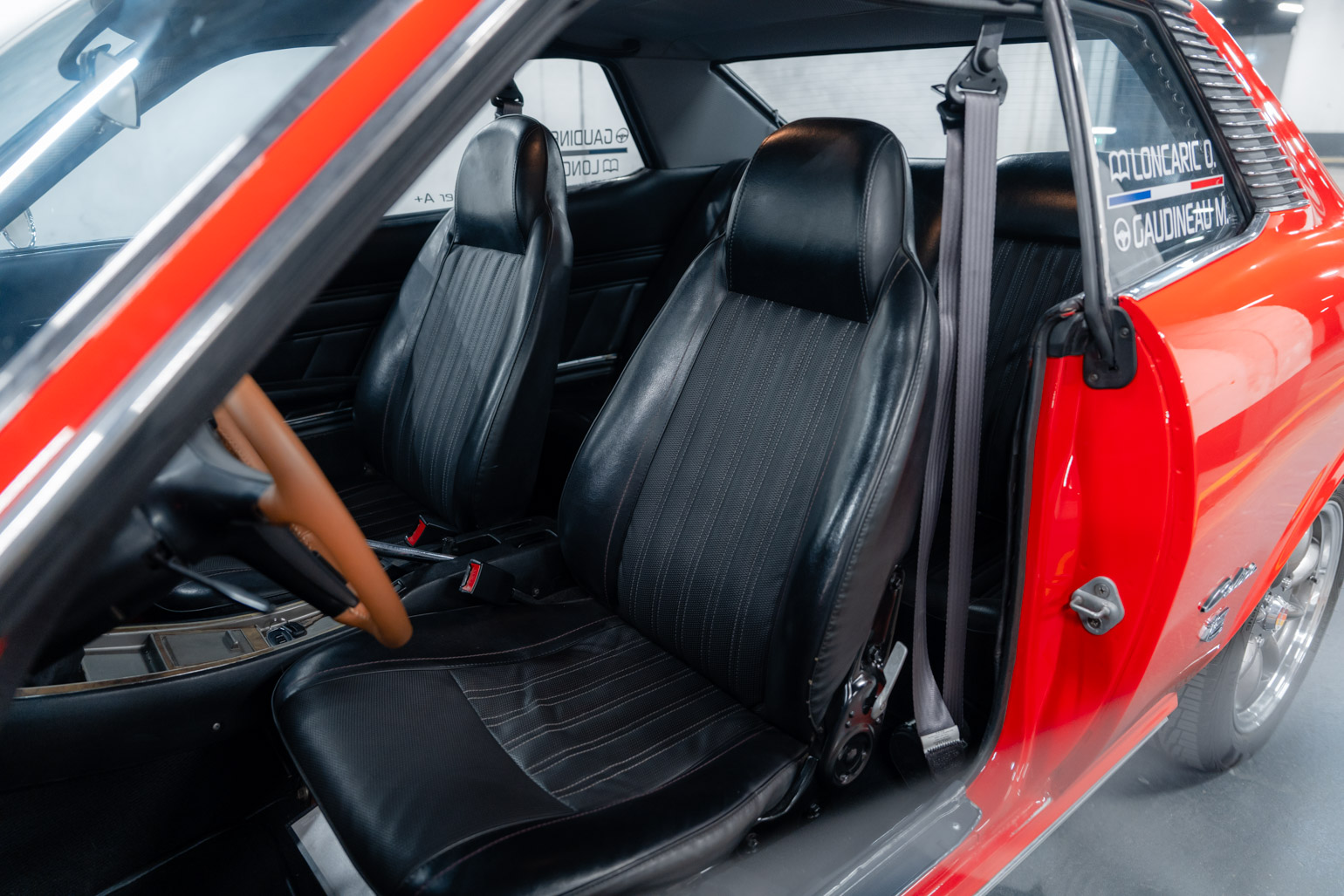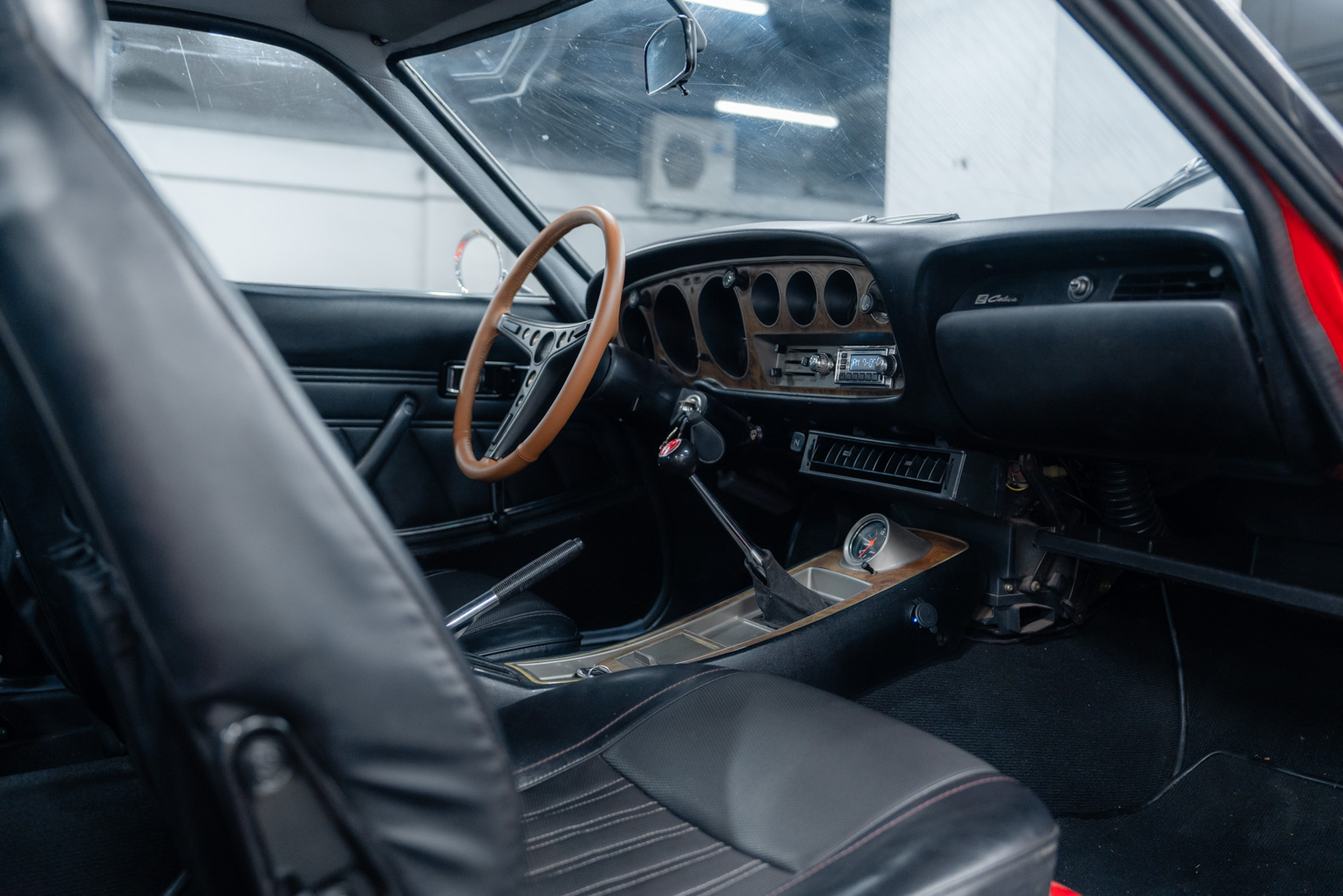 Présentée dans la teinte 301 – Scarlet Prominence Red, associée à un intérieur 202 – Black Leather, cette Celica bénéficie d’une présentation très soignée. La peinture extérieure est récente et la carrosserie se présente dans un bel état général. L’habitacle a également été remis en état avec notamment une moquette et un ciel de toit neufs, contribuant à une atmosphère fidèle à l’esprit des années 70.